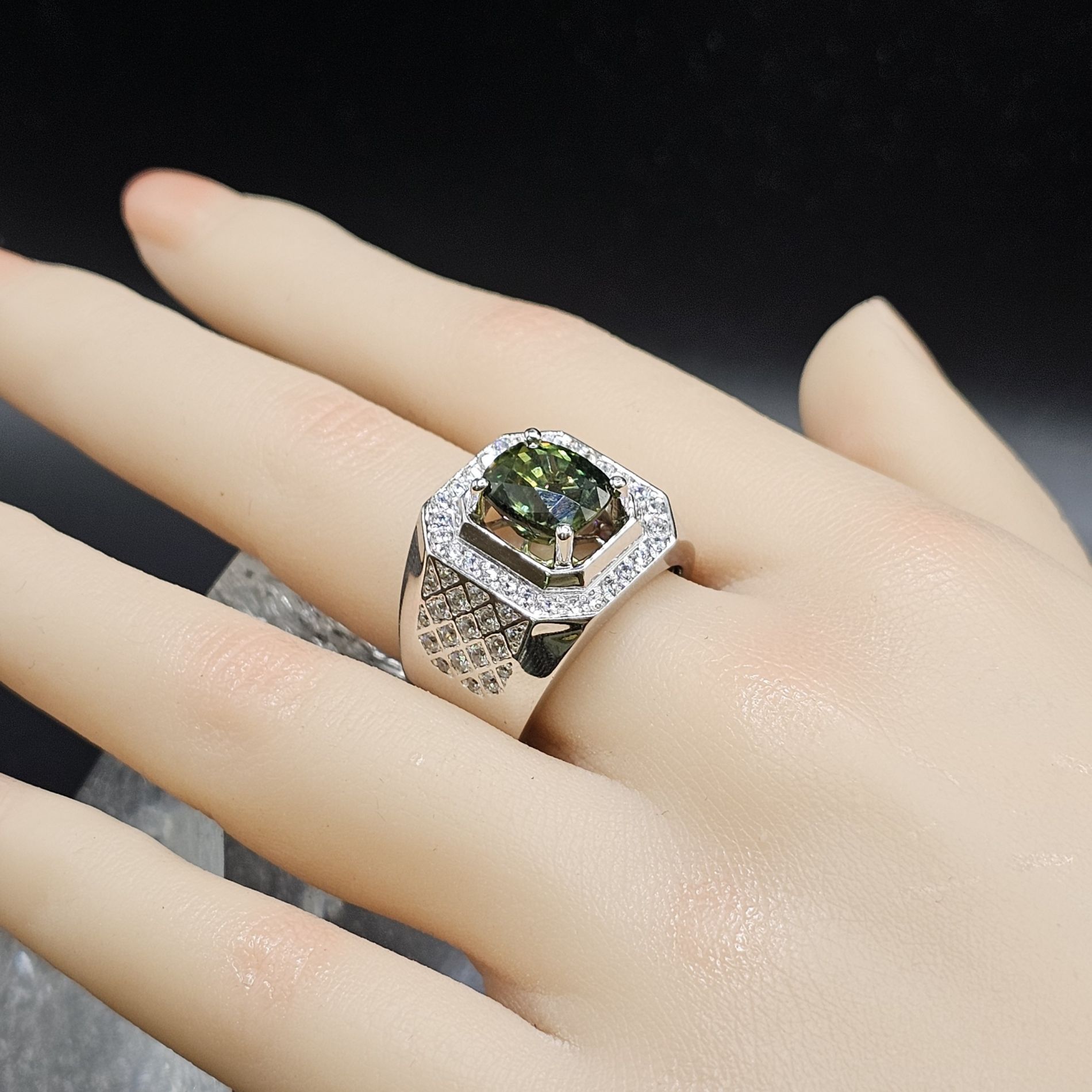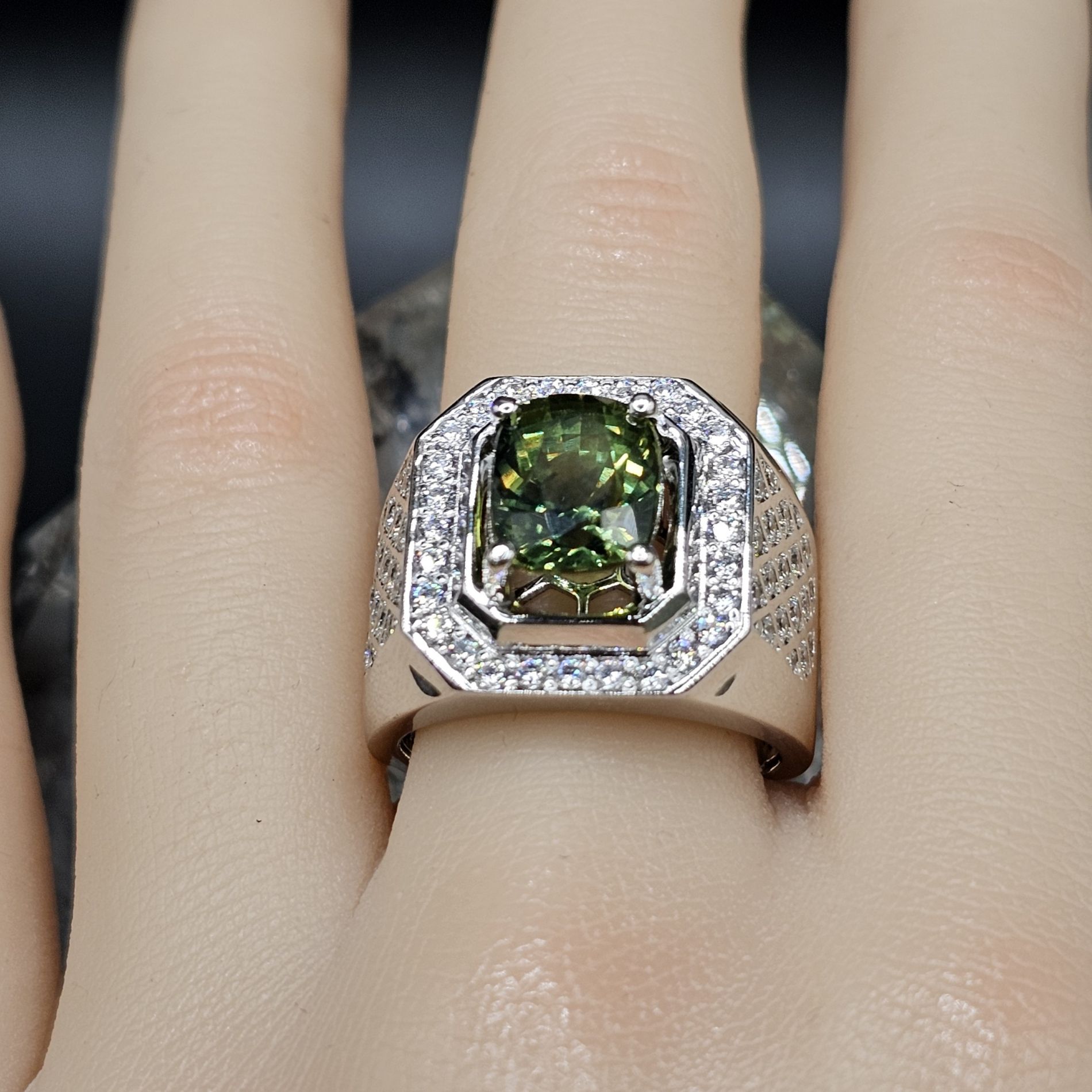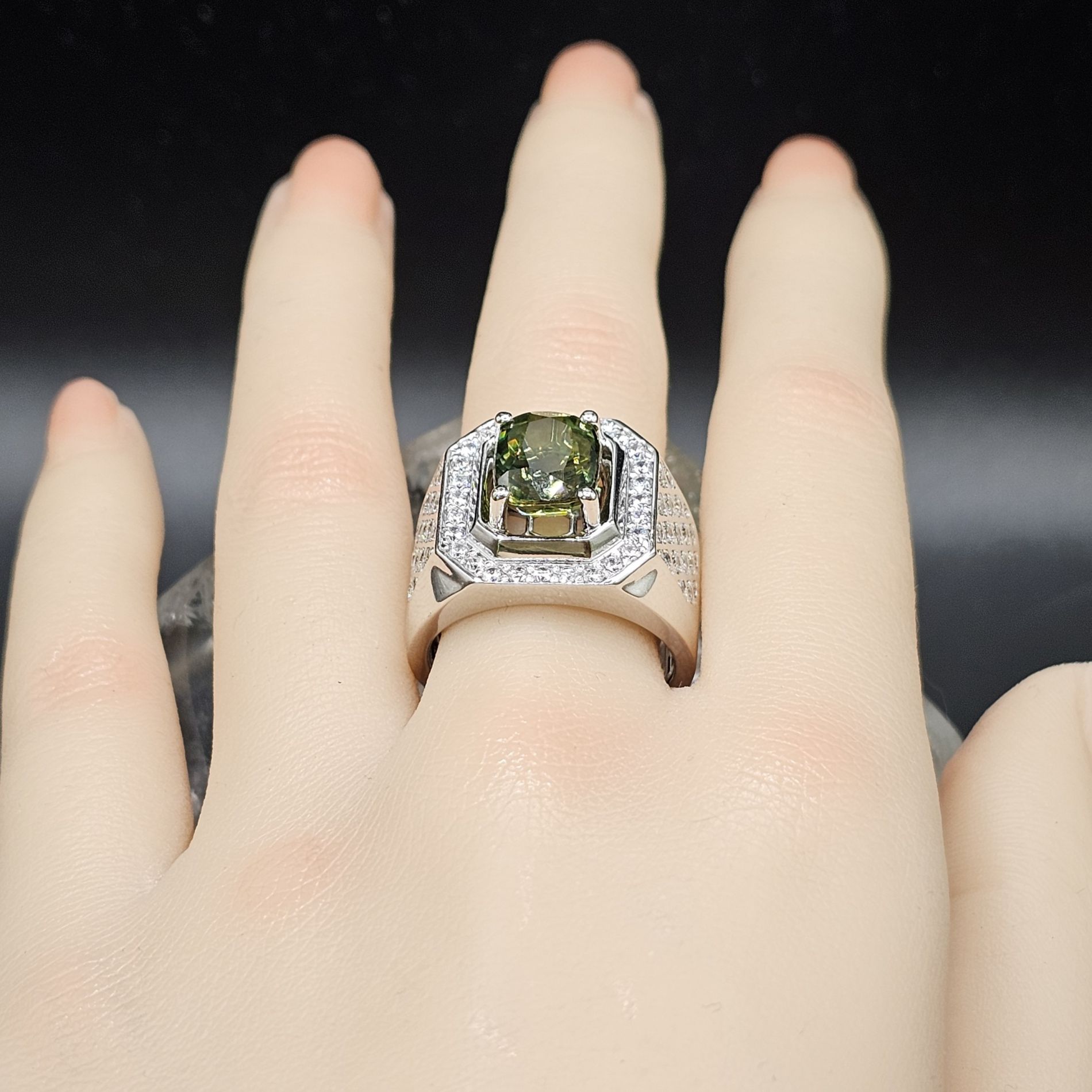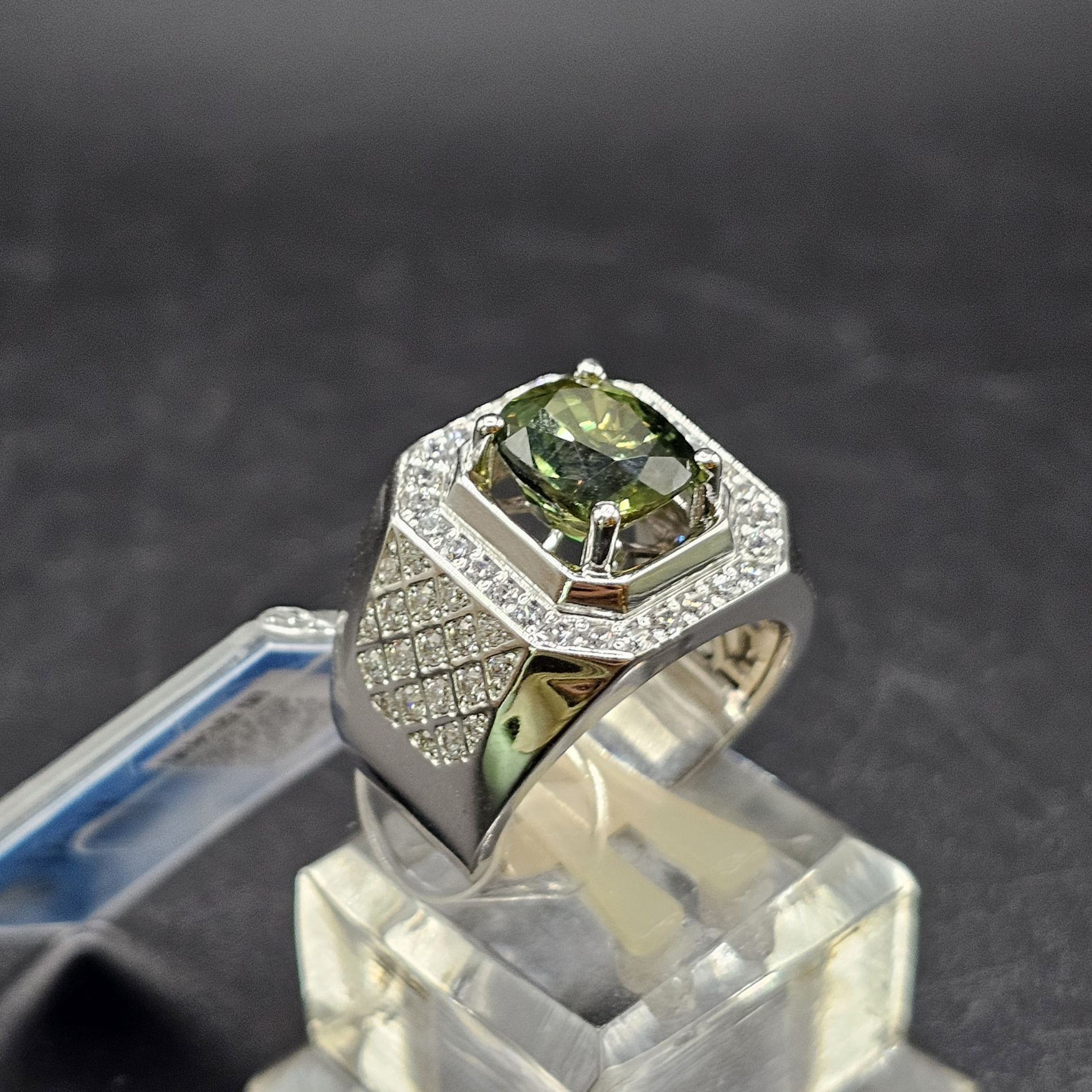 Nhẫn vàng trắng nam đính đá saphire thiên nhiên cao cấp - NVĐQ1204