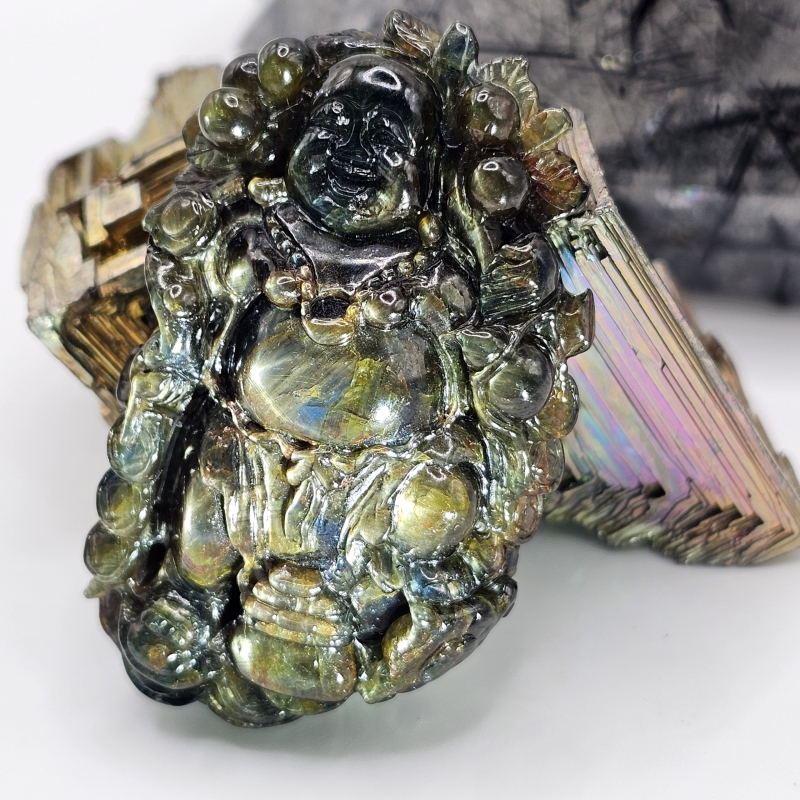 Tượng ngài Di Lạc đá Sapphire sao xanh đen thiên nhiên (VIP) - TDL535