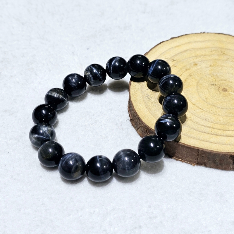 Vòng tay đá mắt hổ chim ưng đen hợp cho mệnh thủy mộc Size 12ly - VTMH1029